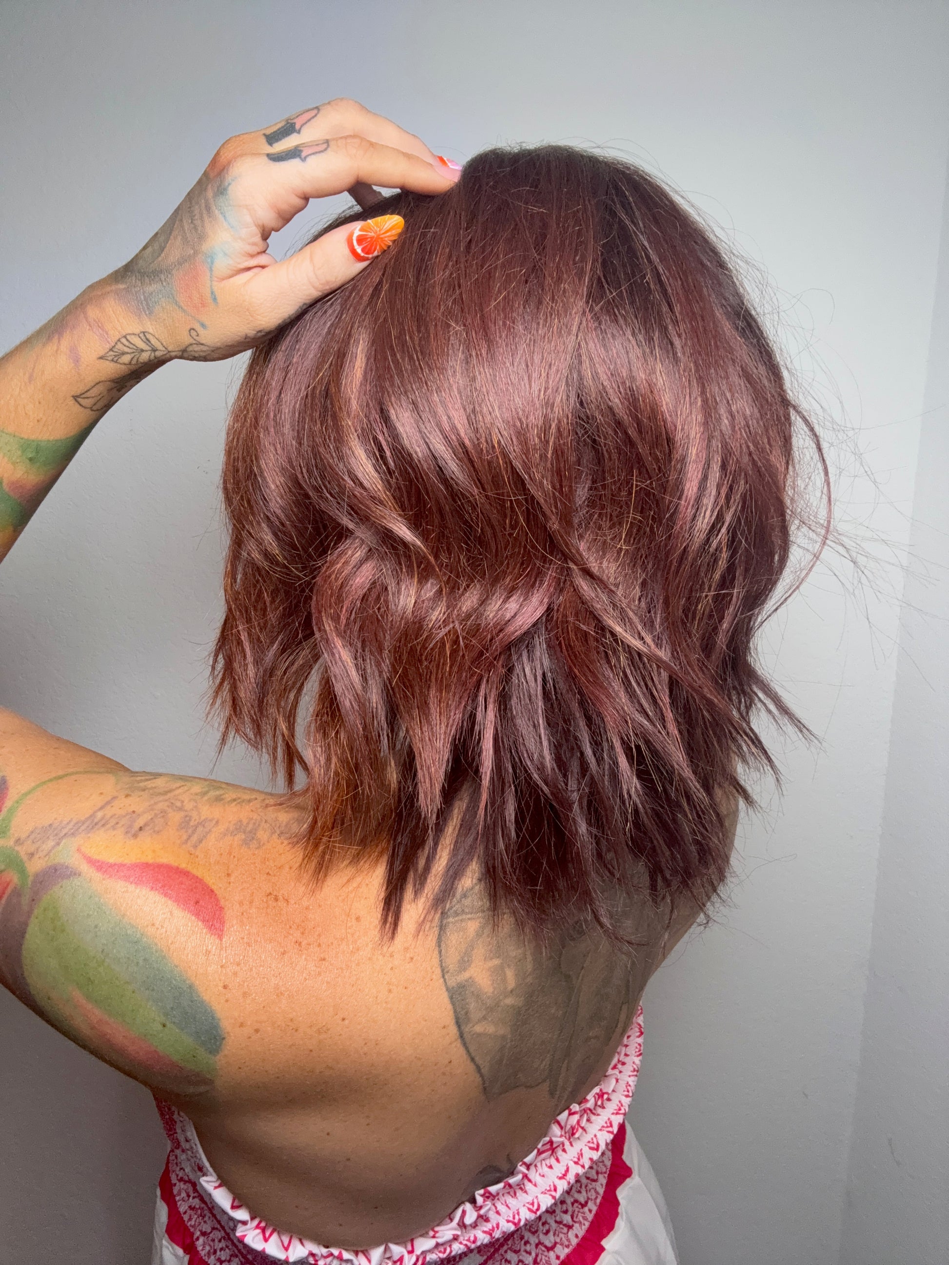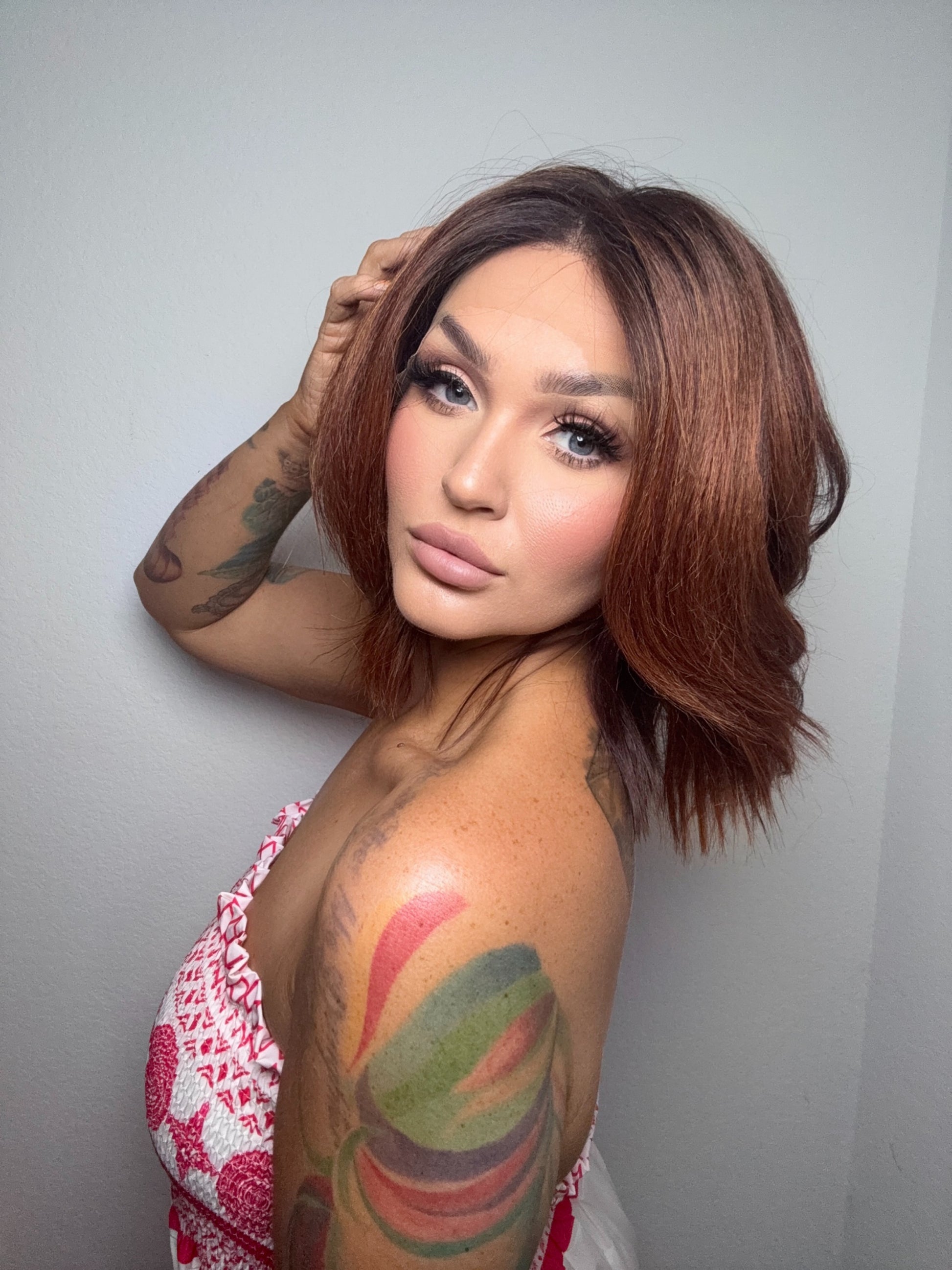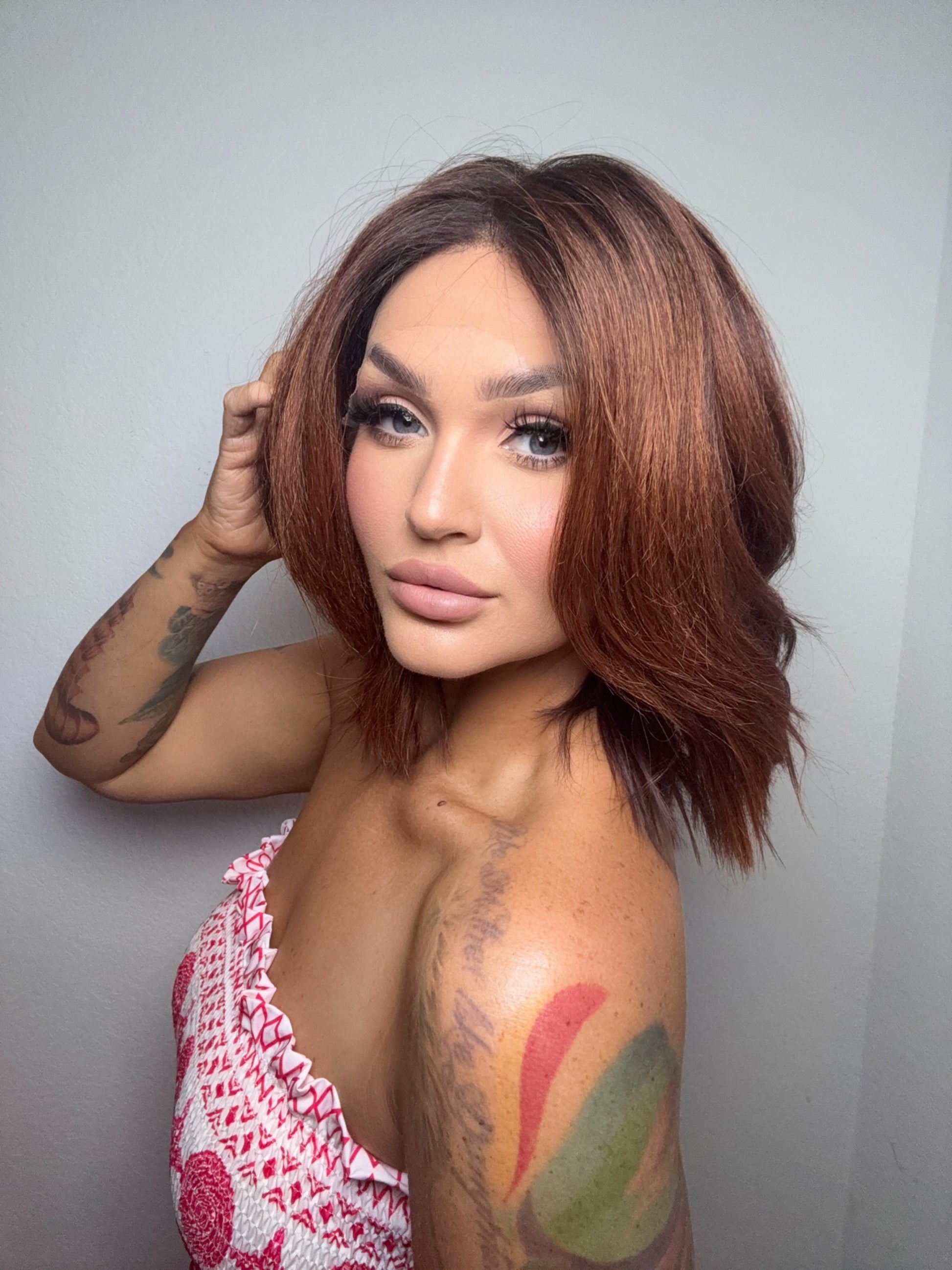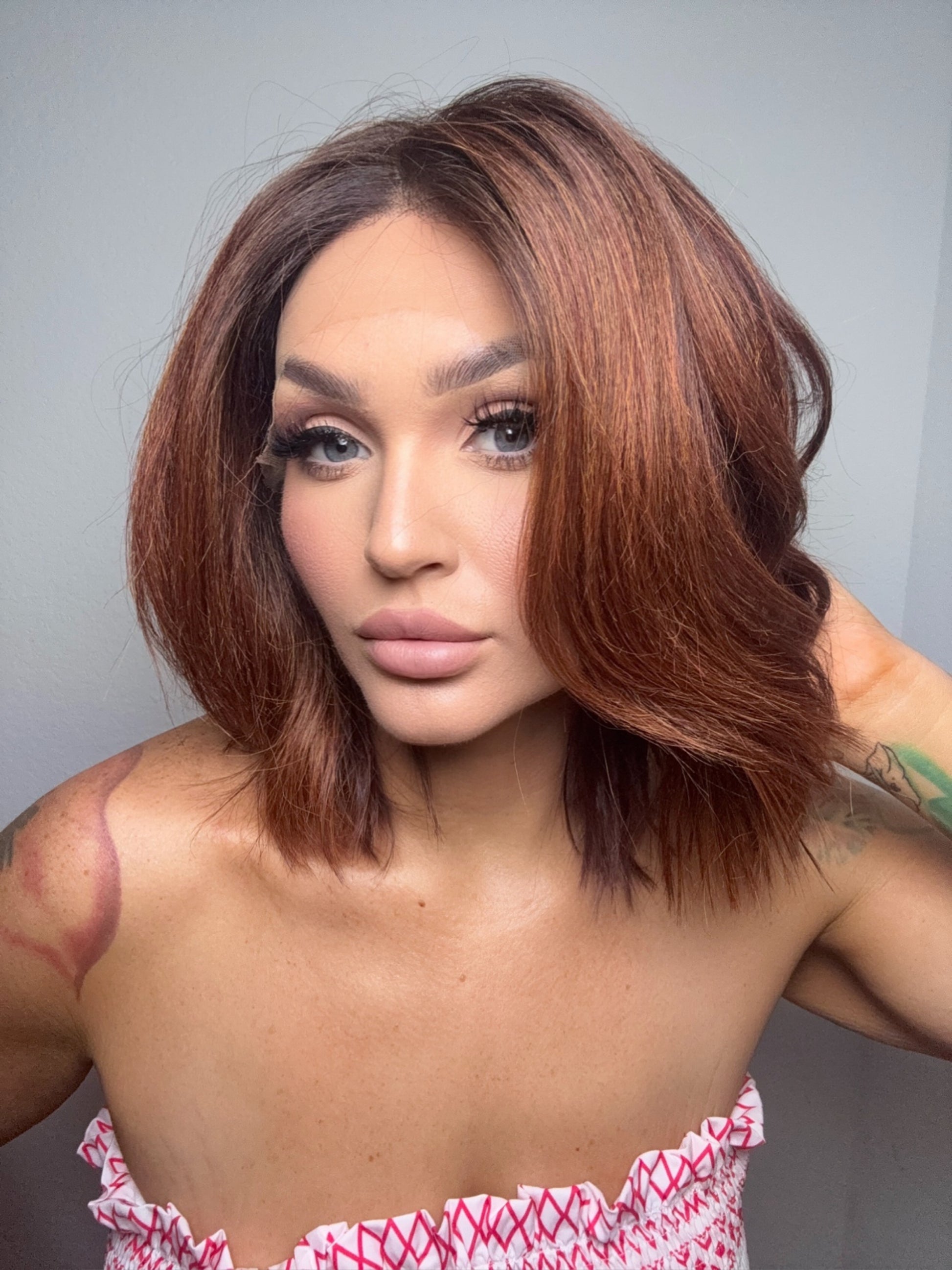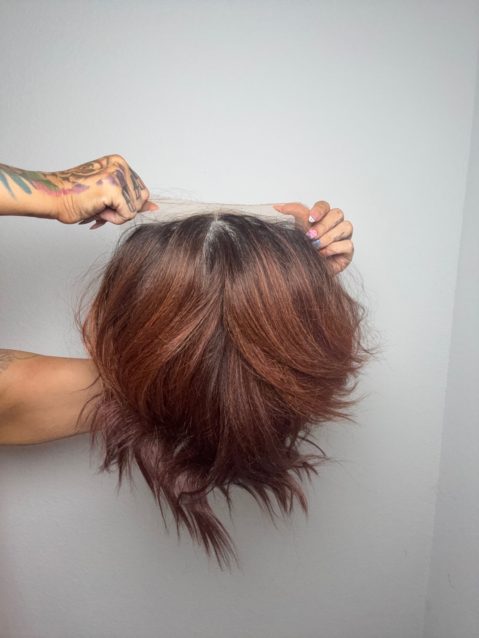 • Auburn red wig