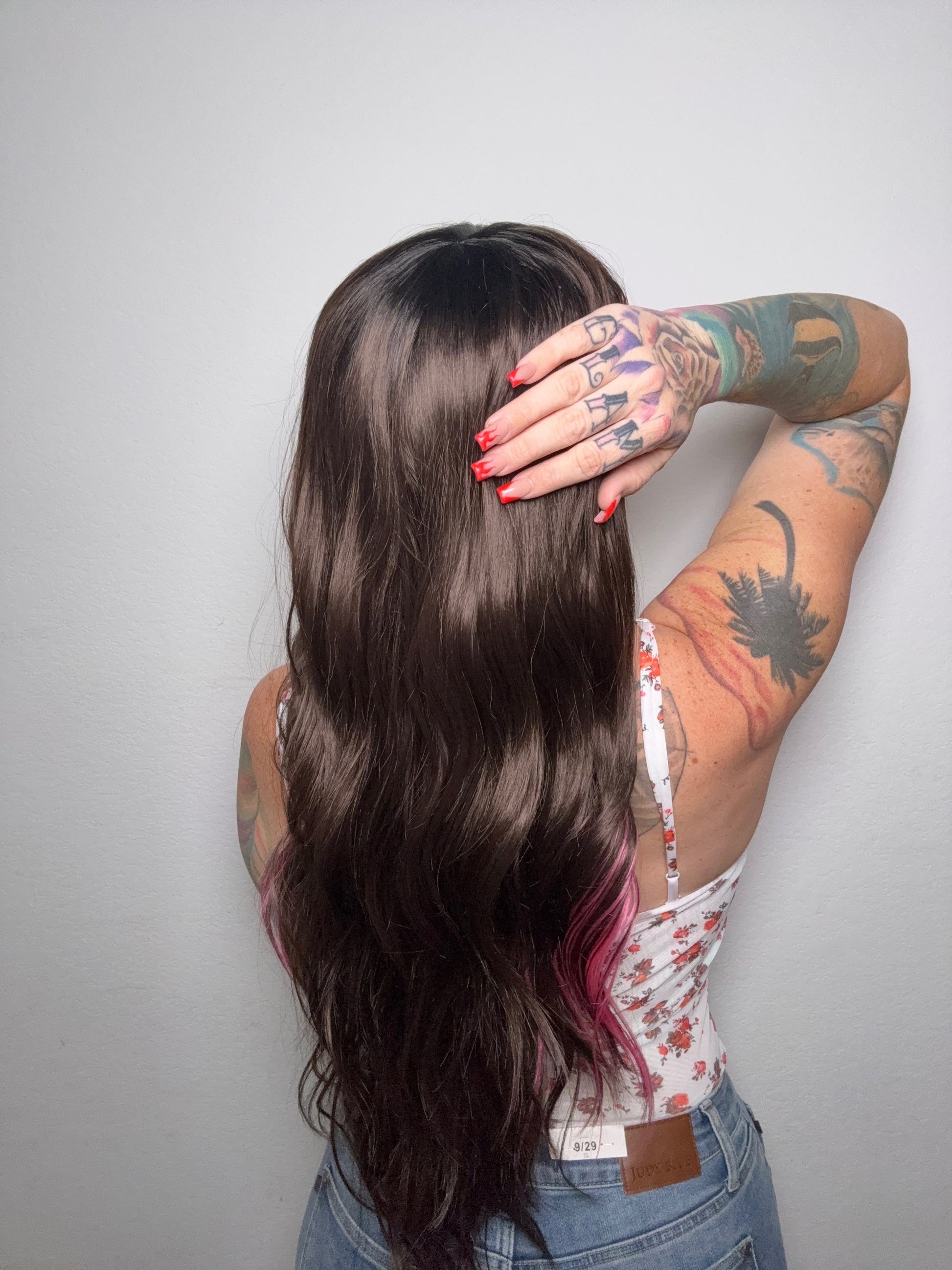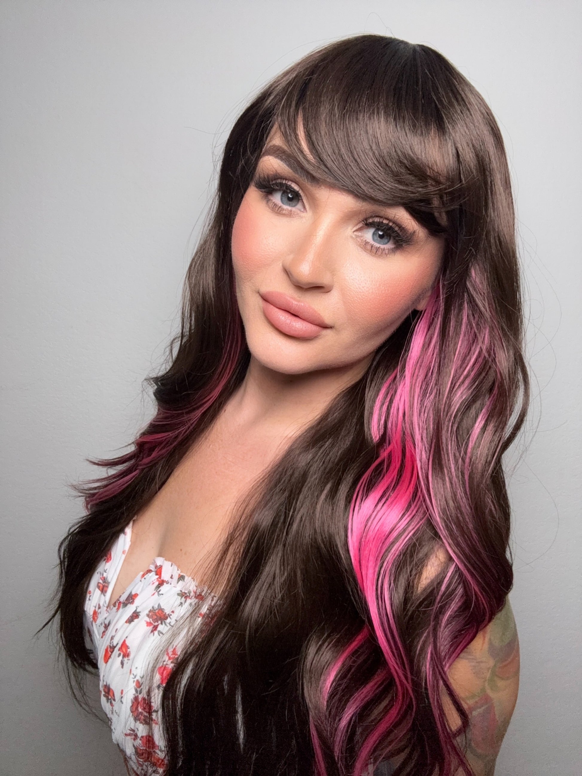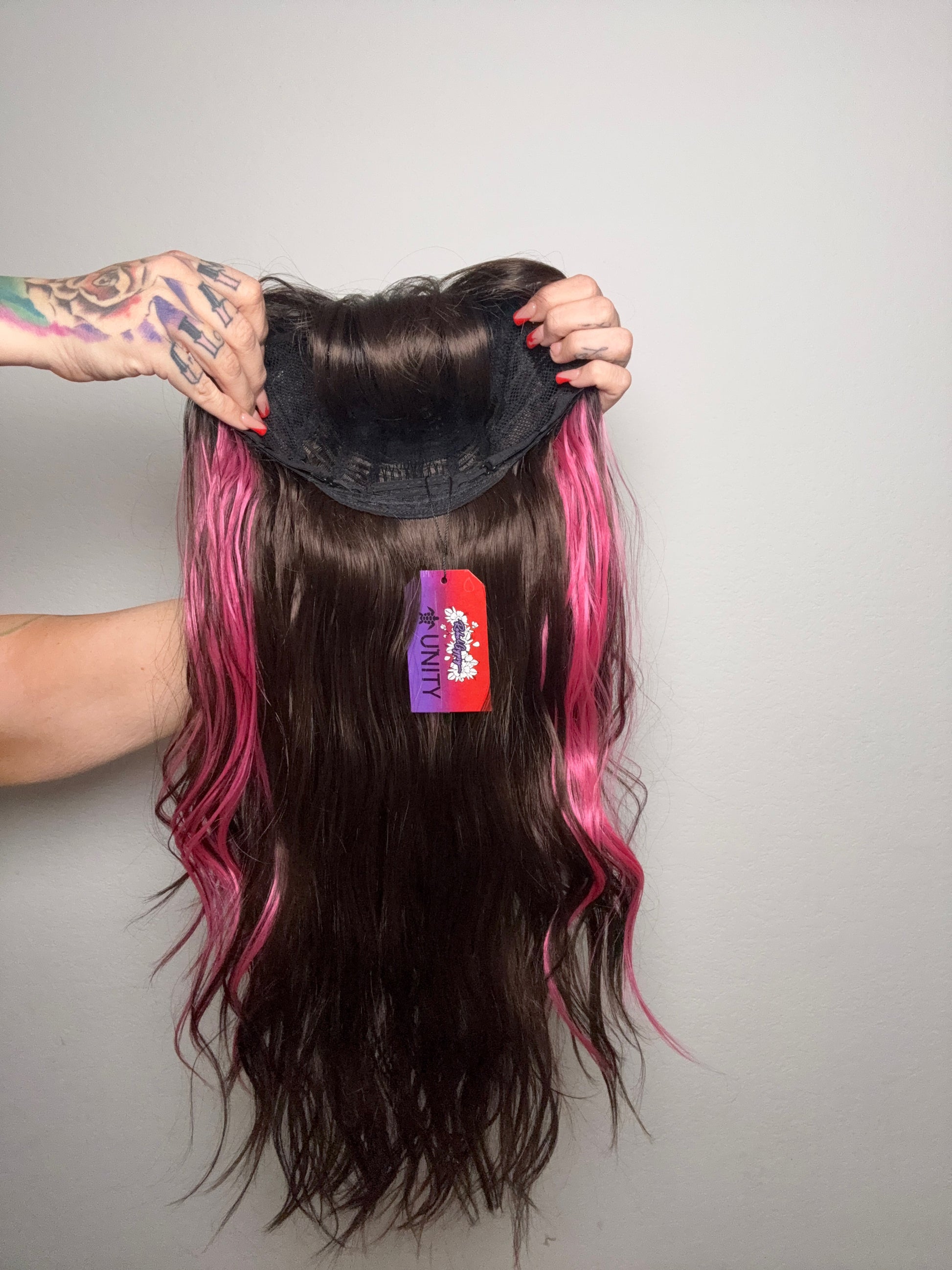 • Brown and pink wig