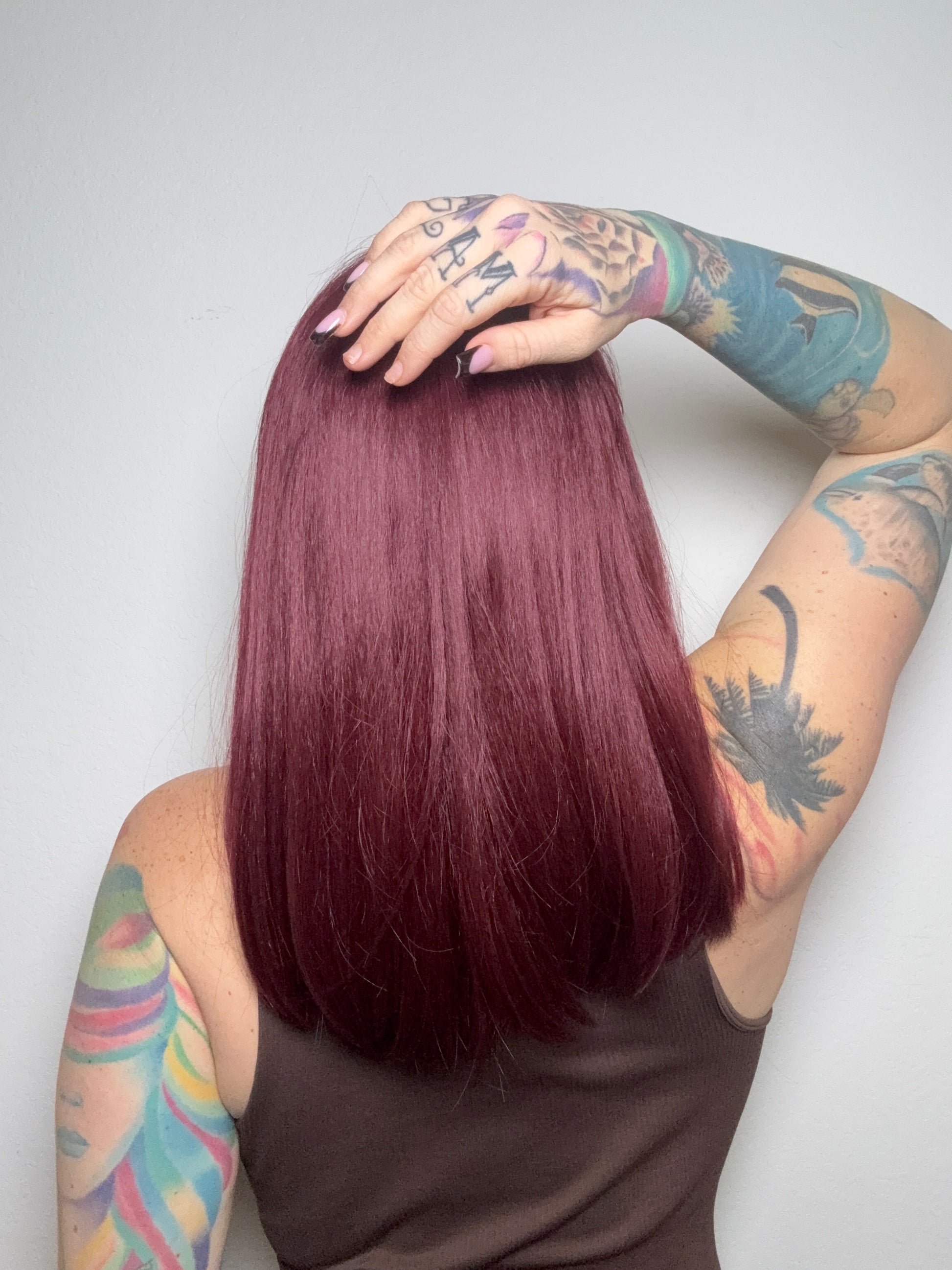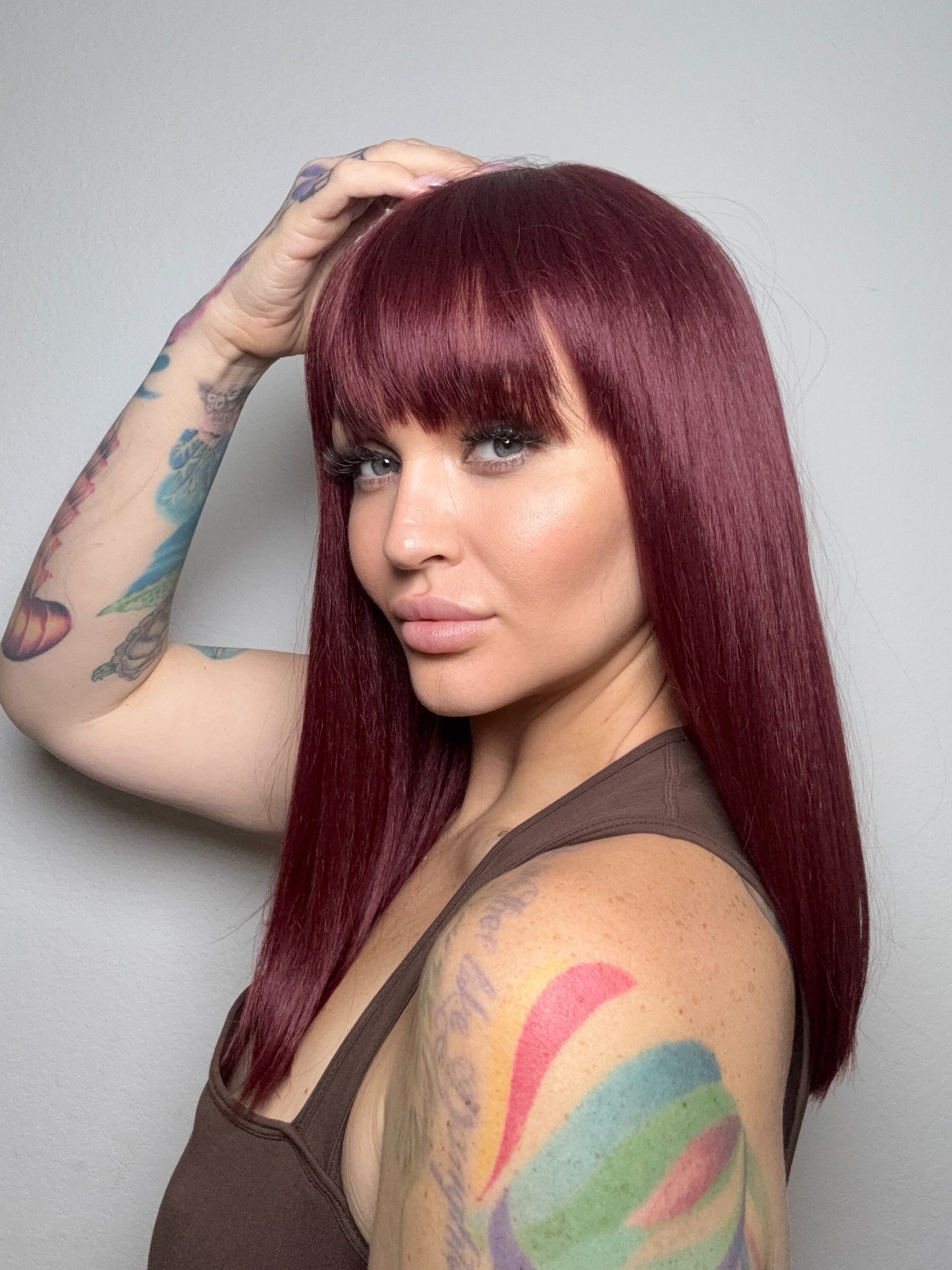 • Burgundy wig