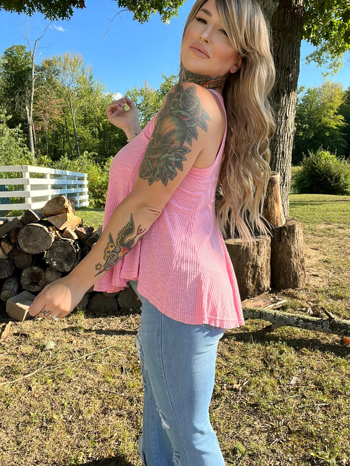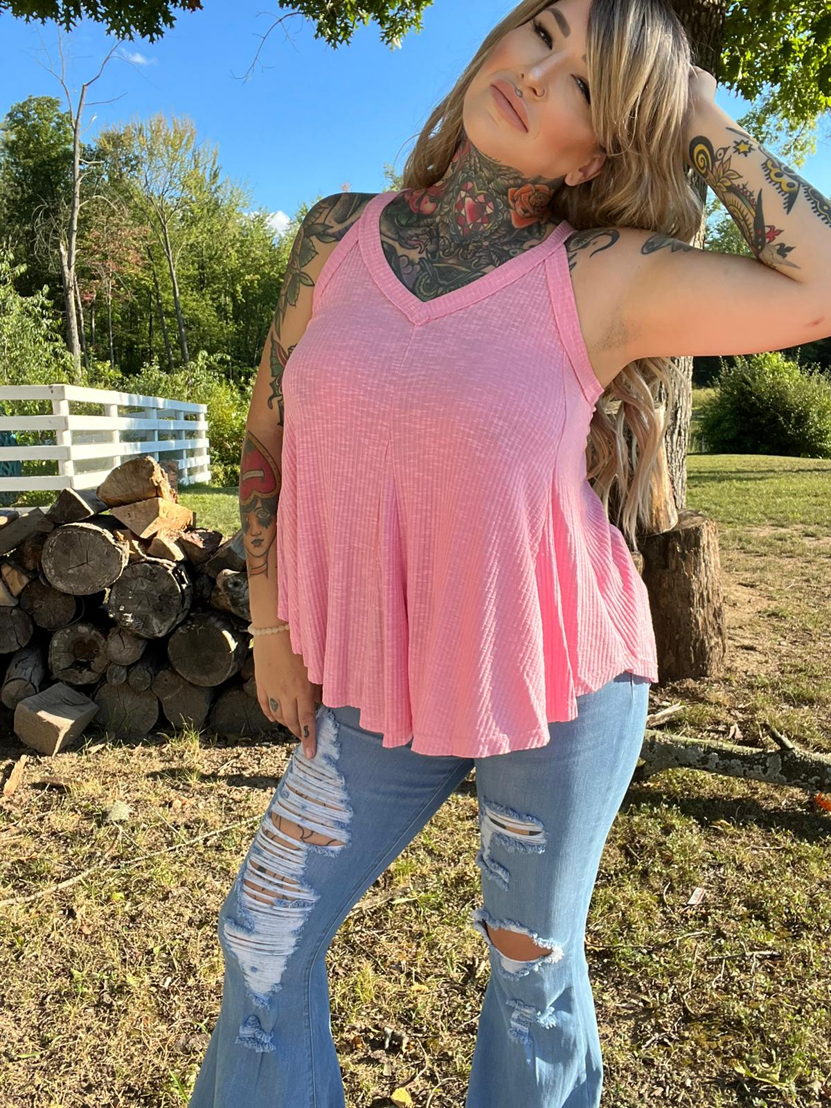 This All To Well Ribbed A-Line Tank Top is so pretty & pink!! She features a V-Neckline with a  flowy lightweight ribbed material that will look amazing on you. This tank is the perfect option to pair with a cute pair of sandals and any color jeans or shorts.