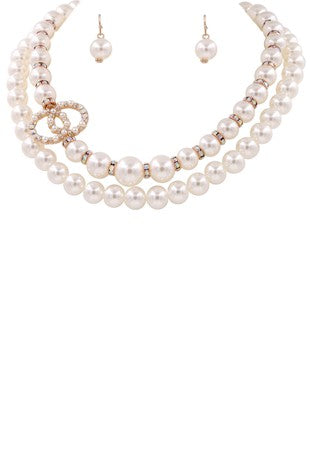 Cream Pearl Double Ring Necklace Set