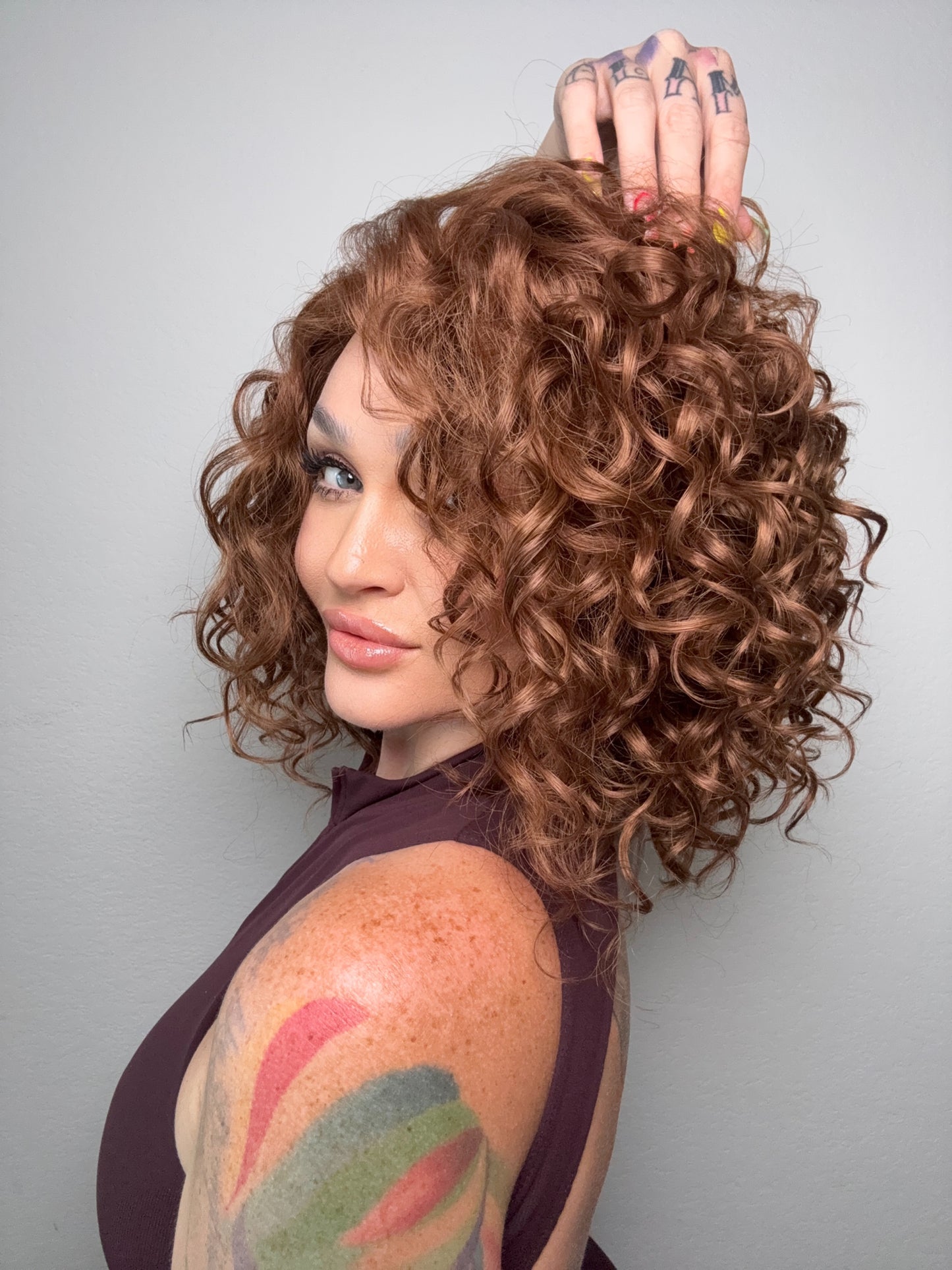 • Auburn brown wig