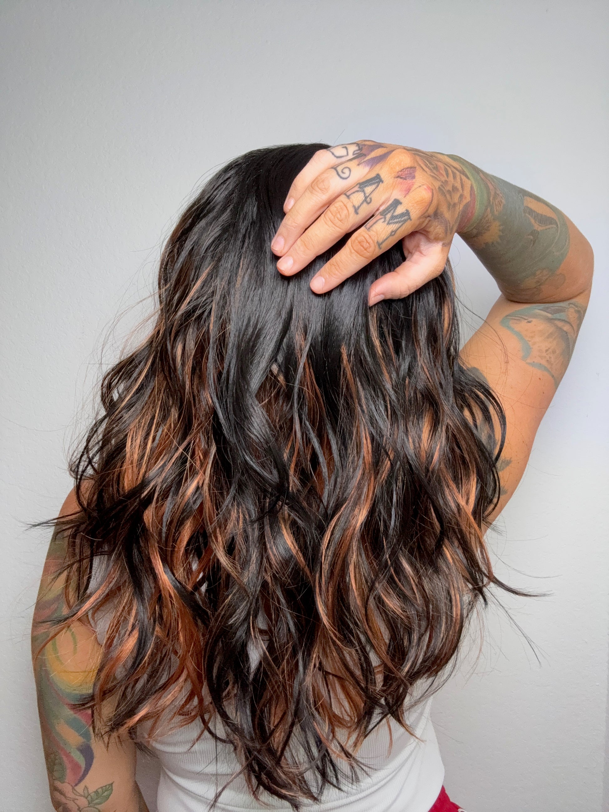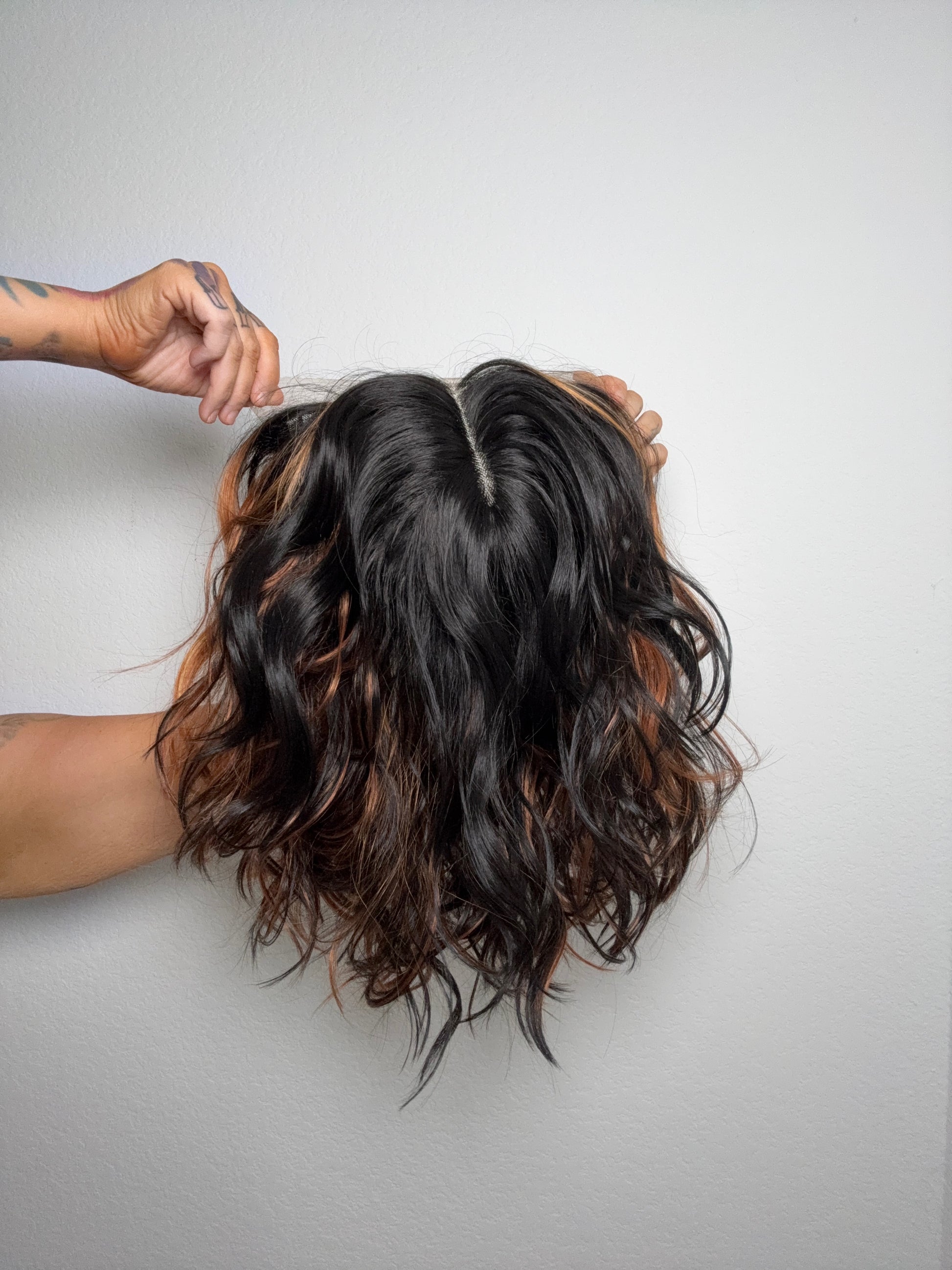 • Black, Copper red wig