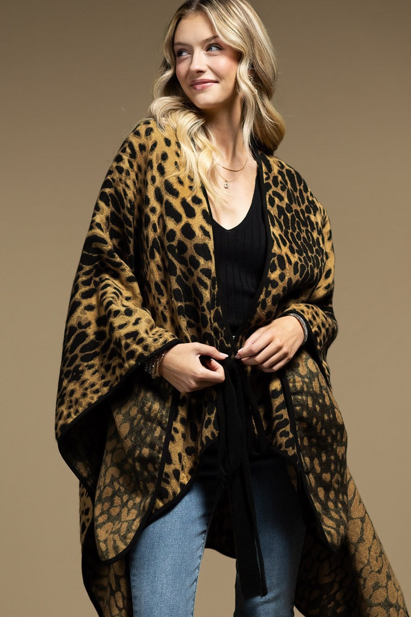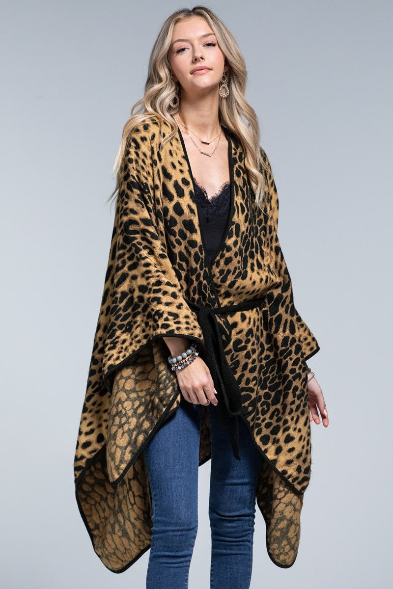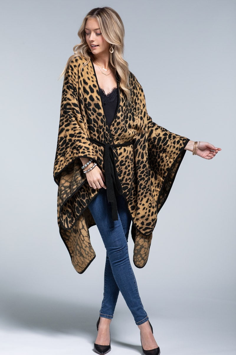 Luxury leopard print ruana with belt tie